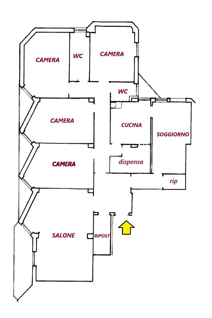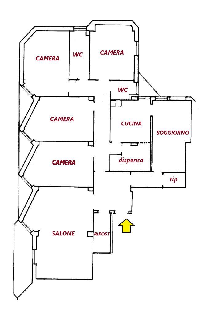 L’immobile, spazioso e luminoso, si compone di un ampio salone, cinque camere, cucina, doppi servizi , ripostiglio e cinque balconi.