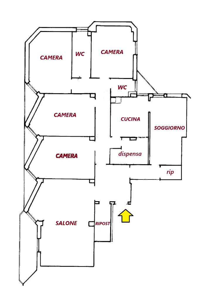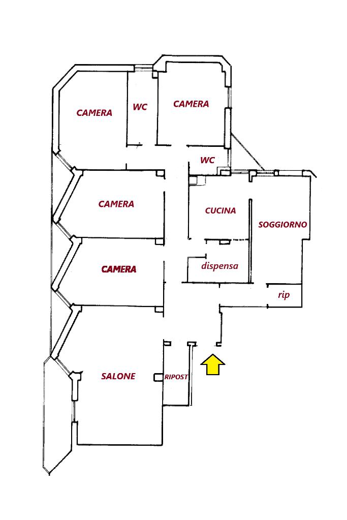 L’immobile, spazioso e luminoso, si compone di un ampio salone, cinque camere, cucina, doppi servizi , tre ripostigli e cinque balconi.