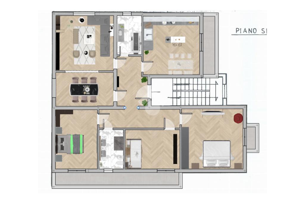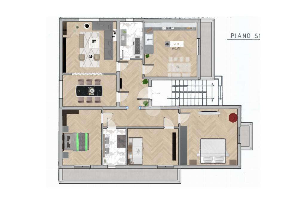 Gli spazi sono ampi e ben distribuiti: l’ingresso accogliente conduce a un doppio salone particolarmente luminoso, perfetto per momenti di relax e convivialità. La zona notte ospita tre camere da letto, ideali per una famiglia o per chi necessita di ambienti versatili da adibire a studio o stanza ospiti. La casa dispone inoltre di doppi servizi, funzionali e ben rifiniti.
