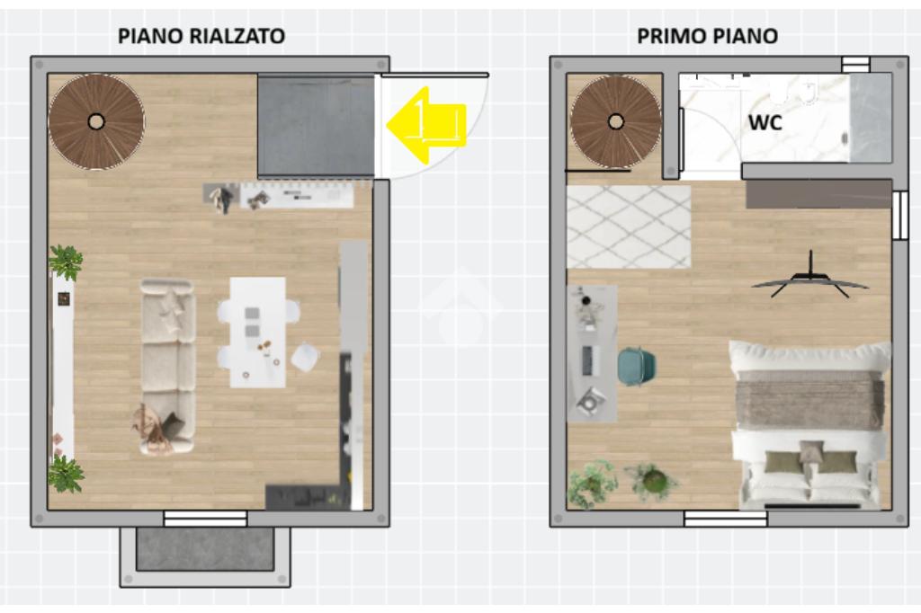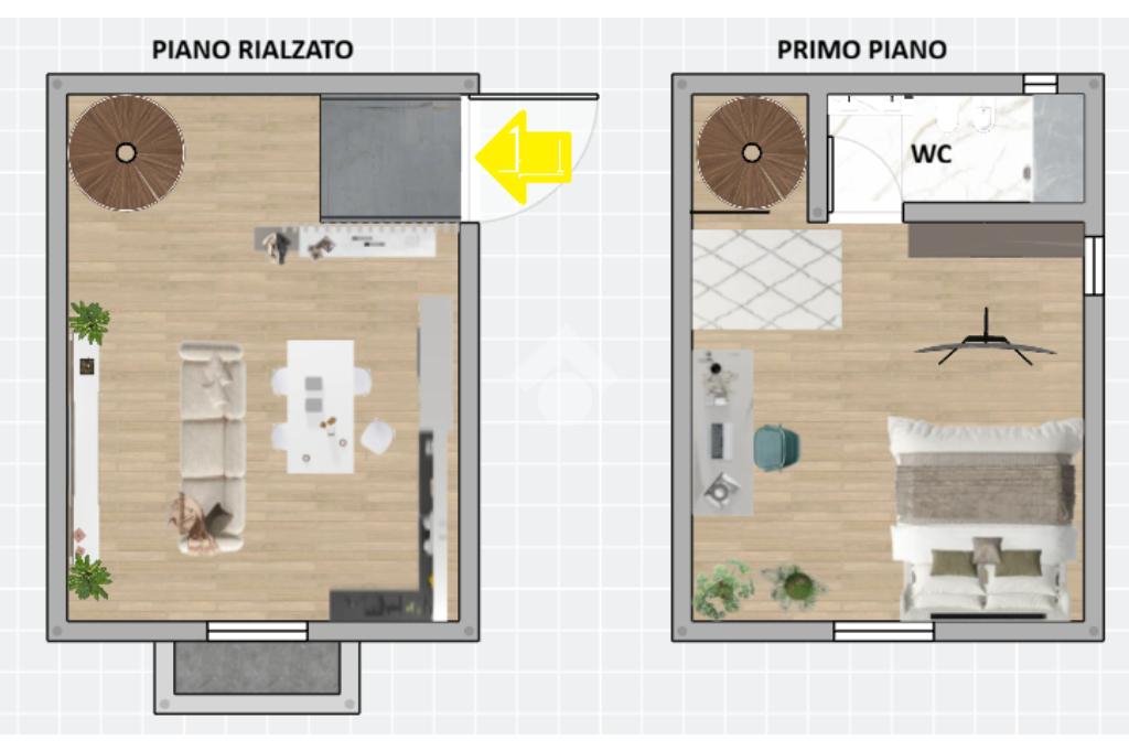 Salendo al piano superiore si accede alla zona notte, dove troviamo una comoda camera da letto impreziosita da travi a vista e da un lucernario che dona luce naturale, oltre a un comodo bagno. L'immobile è dotato di impianto di climatizzazione.